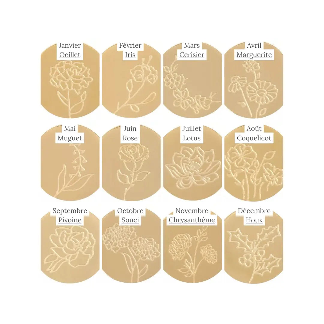 Ce collier délicat et raffiné célèbre la beauté unique de chaque mois avec sa fleur et sa pierre de naissance. Ce bijou apporte une touche symbolique et personnelle à votre tenue. Ce collier est une idée cadeau idéale pour célébrer une date spéciale, un anniversaire ou simplement pour ajouter une pièce unique à votre collection.
